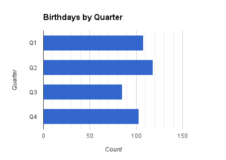 If you read the post a few weeks ago you know how to generate random numbers in a program like Excel or Google Docs. We can quickly generate 50 random numbers that way, which will fall between 0 and 1. Then we can check what proportion of those fall into the top or bottom half of that scale.