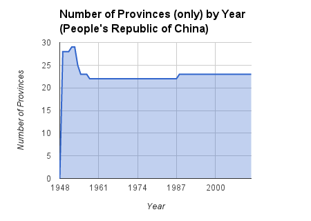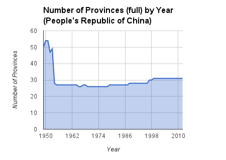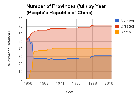 This might make things look as if not much goes on in terms of China adding/removing provinces, but things couldn’t be further from the truth. In fact, a ton of shuffling has gone on over the last half century.